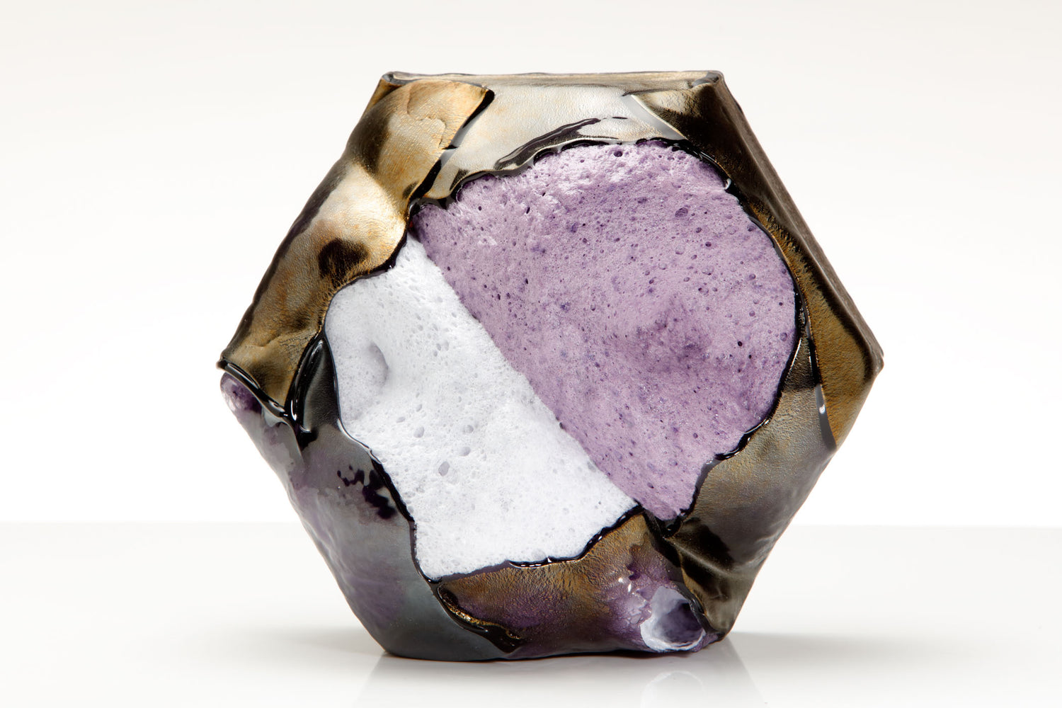Roger specialises in foam glass and is at the forefront of this technique. Delighting in exploring the alchemy of forming the various colours that he uses in his foam glass constructions.