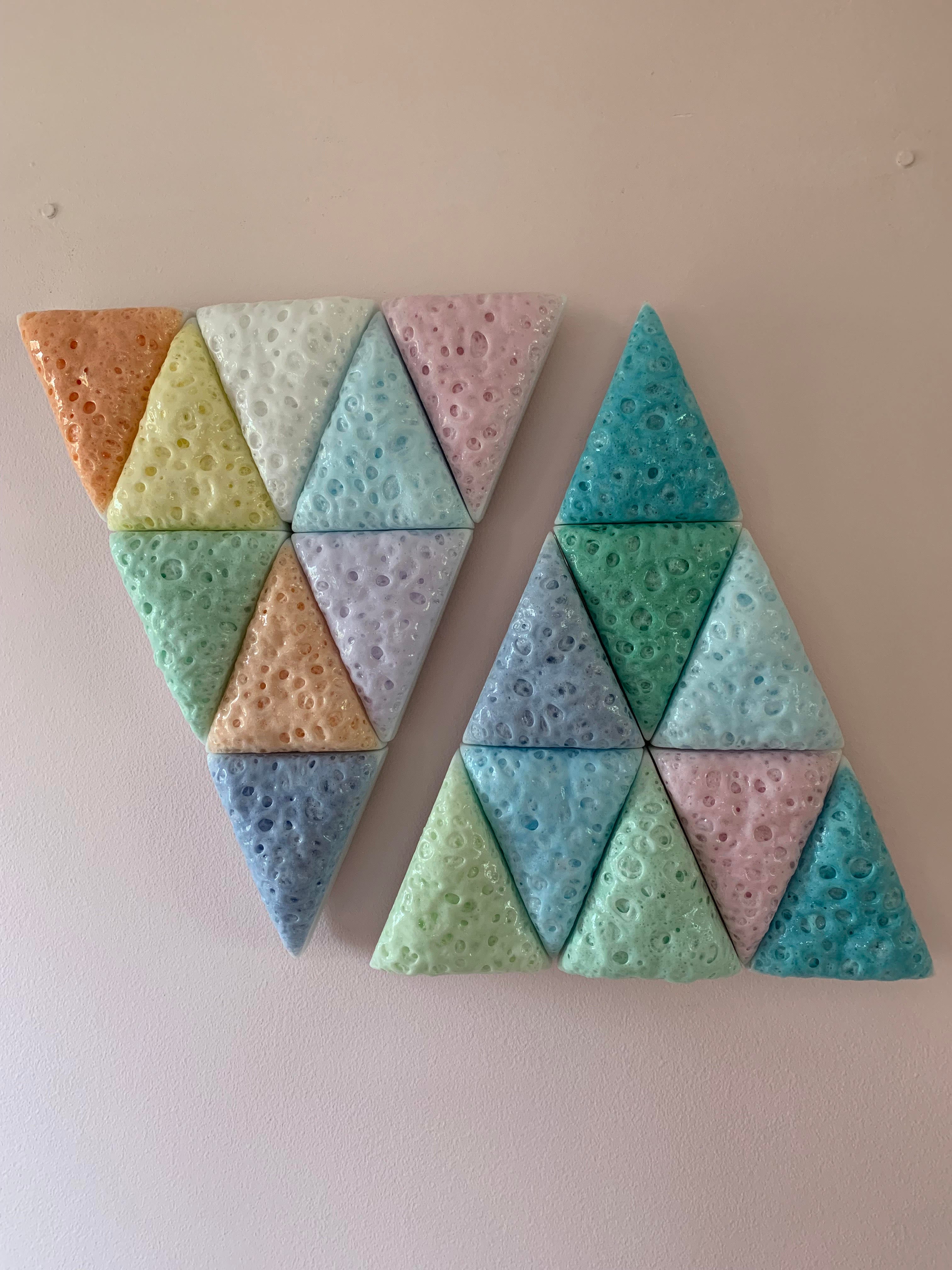 Roger is passionate about using colour and pattern in his glass making. This is what drives him in his work. He delights in a playful approach to mixing coloured glass and light in whatever form of object he is making.