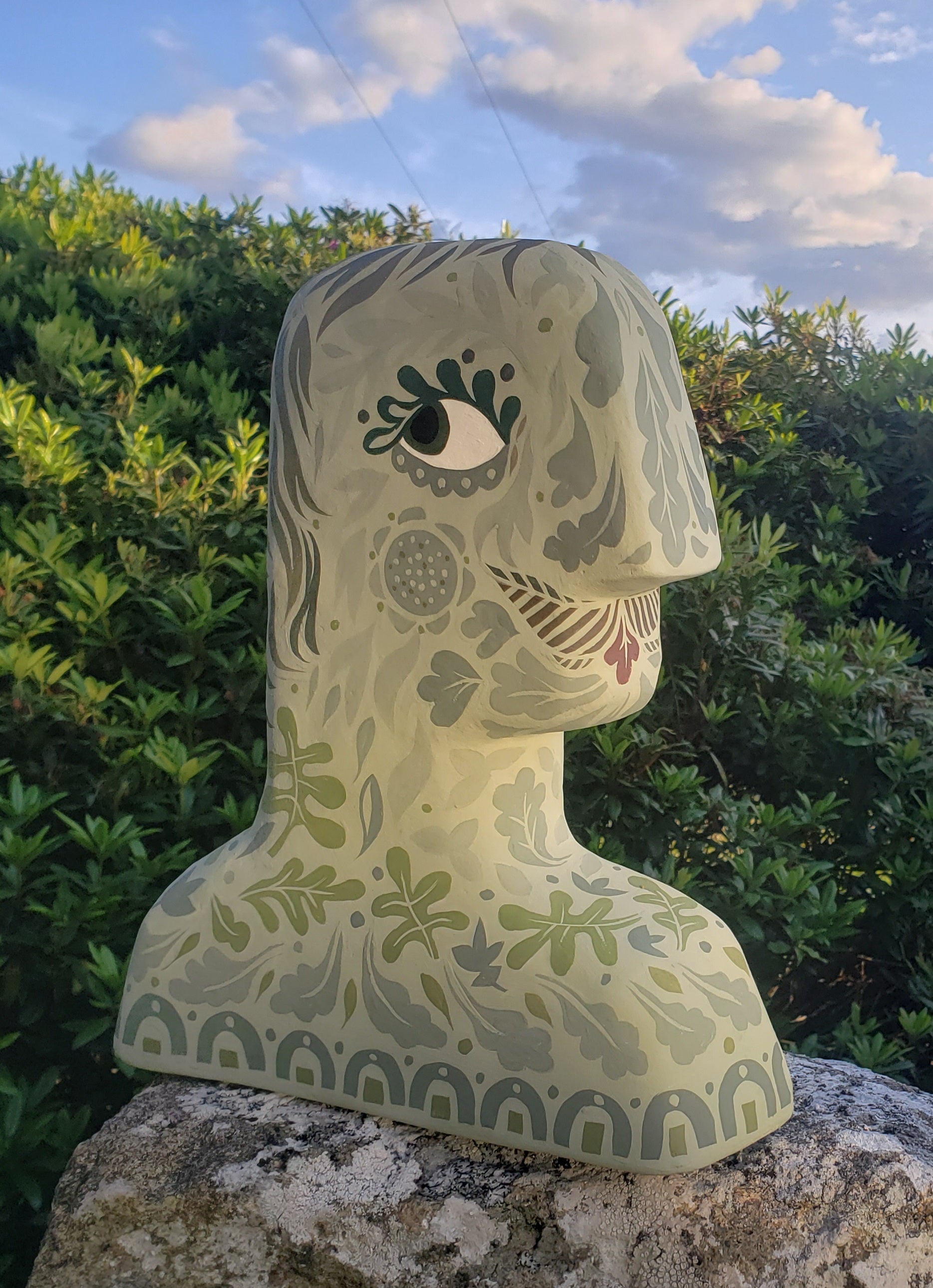 After studying Theatre Design and Illustration, Jim worked as an Illustrator for many years. Over time the illustrative work began to emerge as three-dimensional pieces. Using papier-mache and mixed media, He explores folklore and legend – both local and European.
