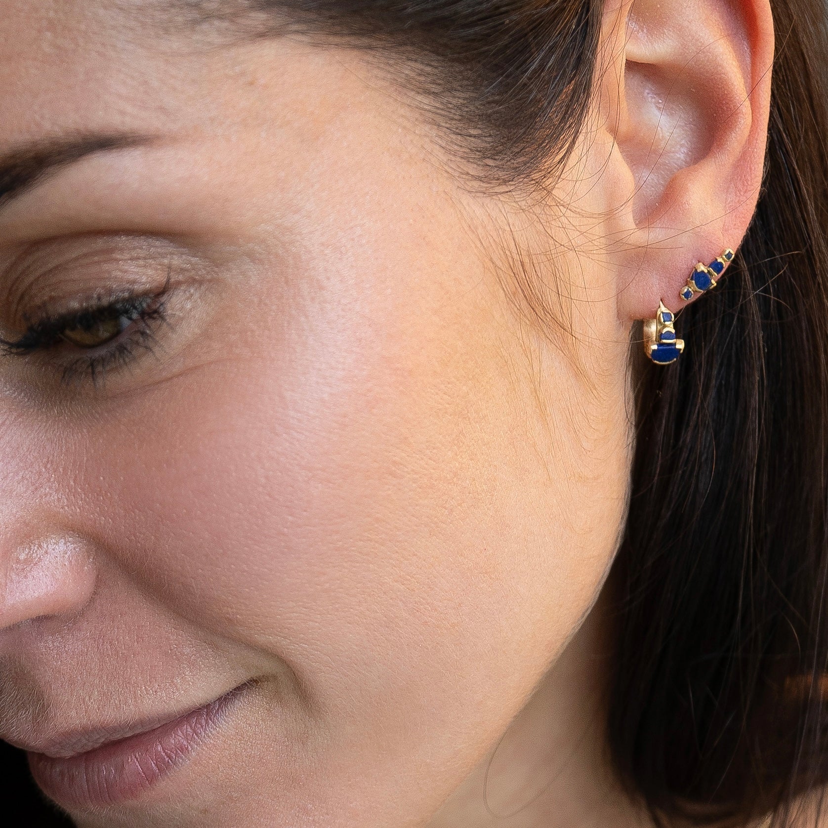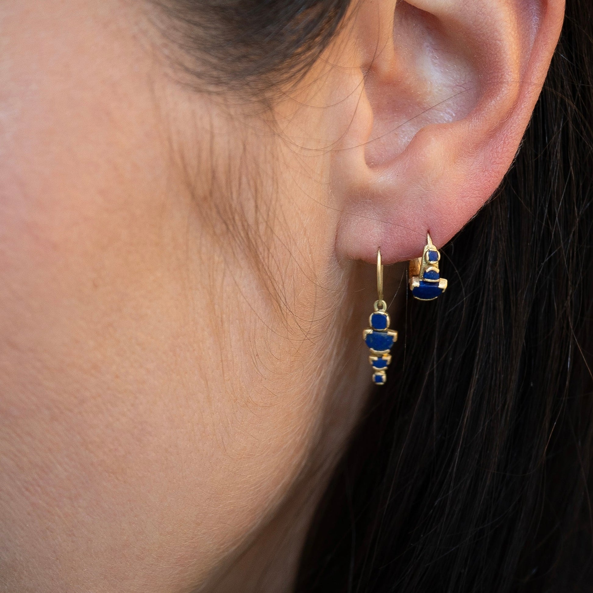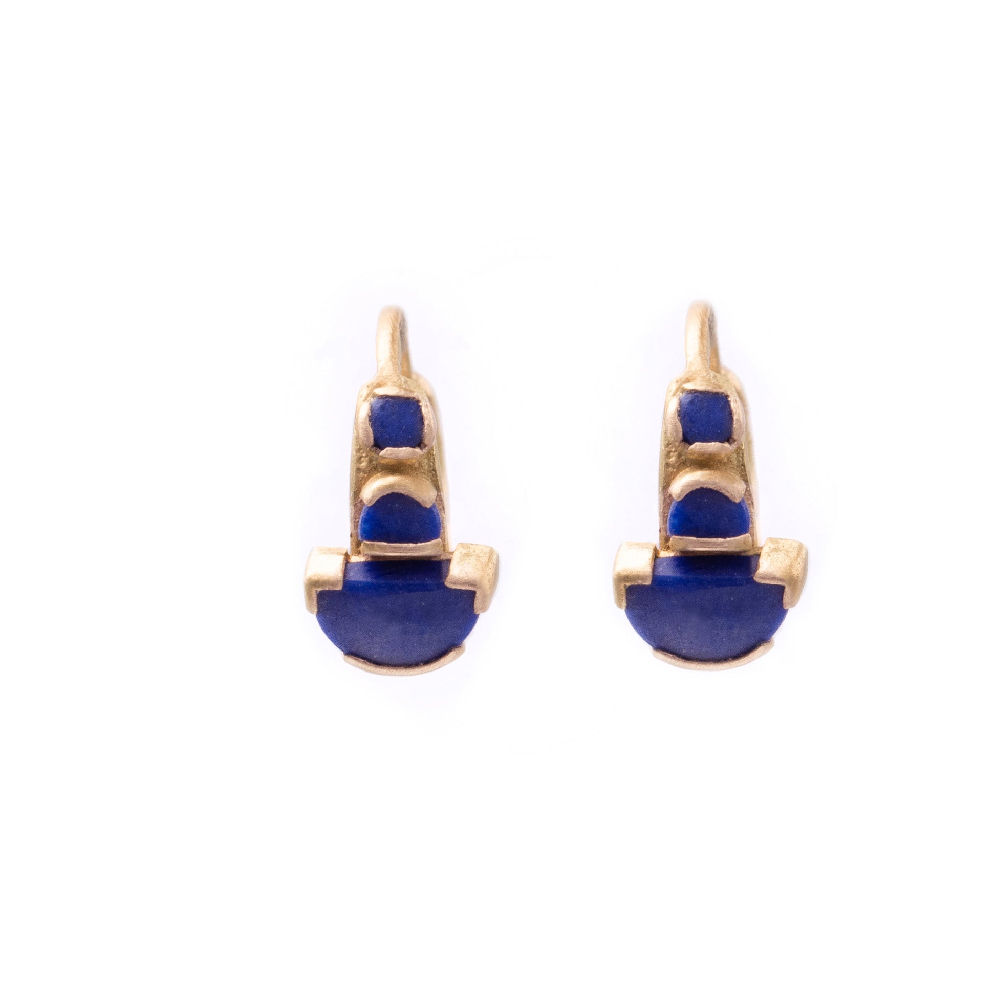 These earrings honour the beauty of hand-cut lapis lazuli—unmatched for its deep, saturated blue and long revered as a symbol of wisdom, truth, and protection.