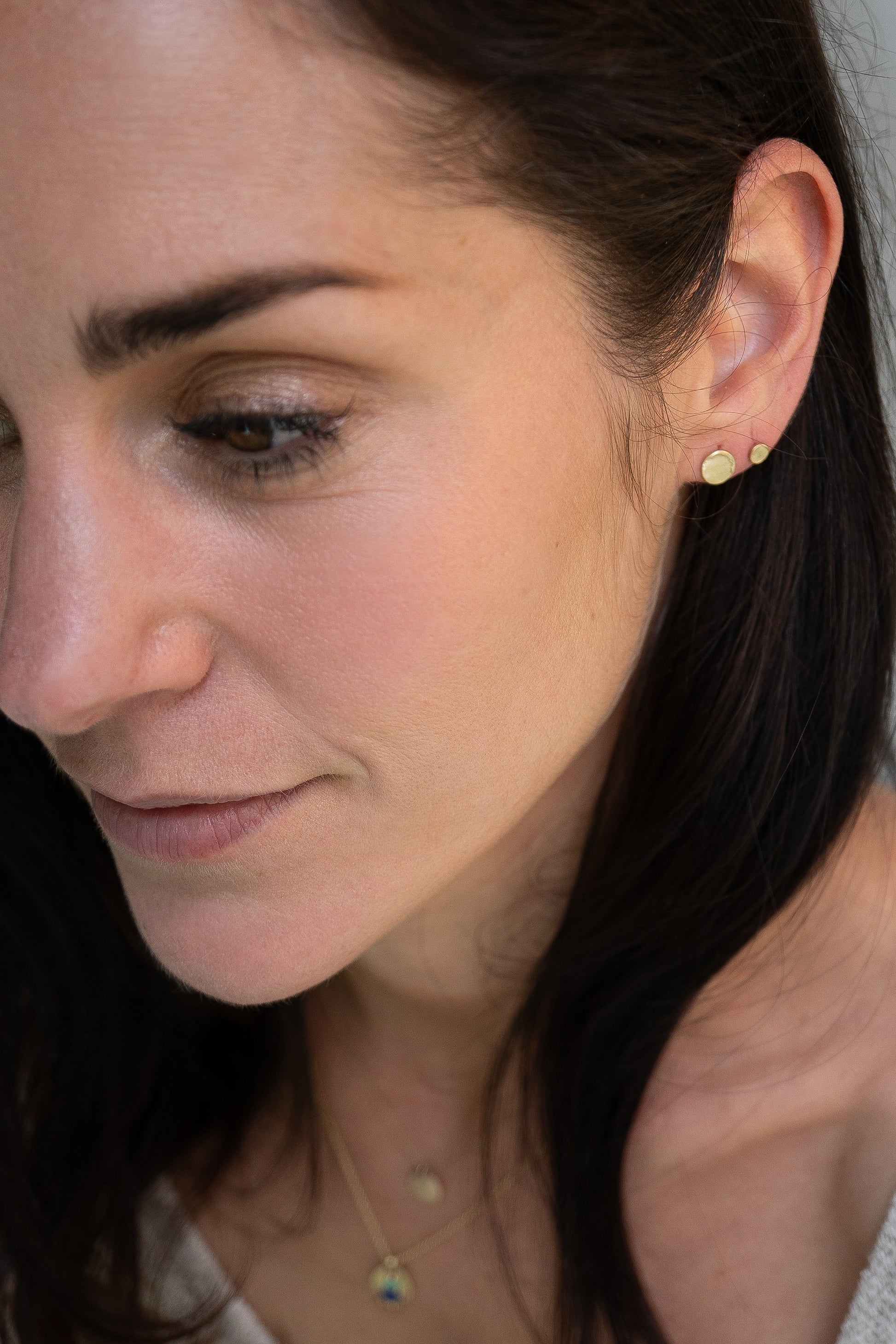 Everyday studs with an ancient fingerprint texture and a raw raised edge.